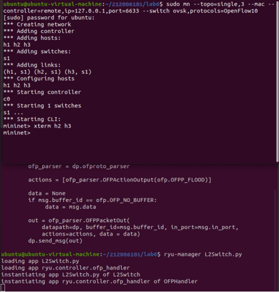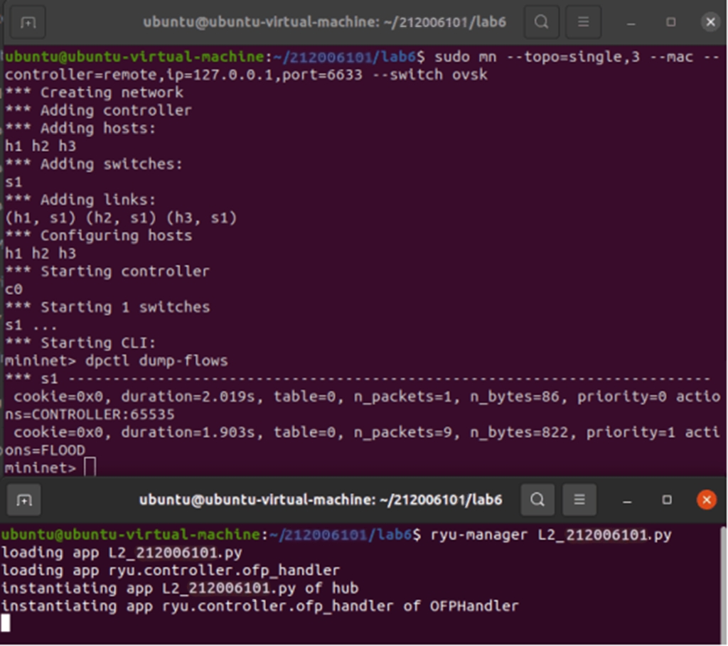 - 能够理解RYU控制器实现软件定义的集线器原理;