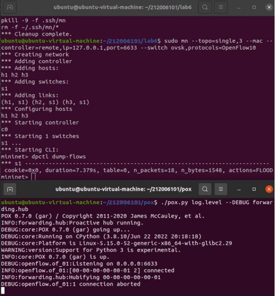 Ryu中L2Switch下发的流表是无法查看的,而POX中Hub模块可以查看。