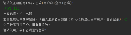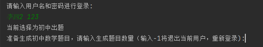 目的:实现小、初、高中的数学题目自动生成通过测试运行,队友代码能够完整的实现个人项目的需求用户正常登陆: