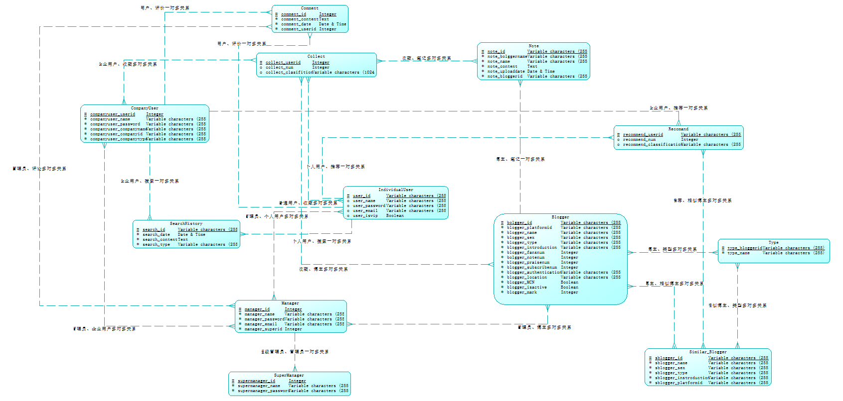 2、在确定实体间关系时没有查相关资料,除了一对一、一对多、多对多,还写了一些其他东西,最后在老师的指正下修改过来(实体关系只有一对一、一对多、多对多三种)