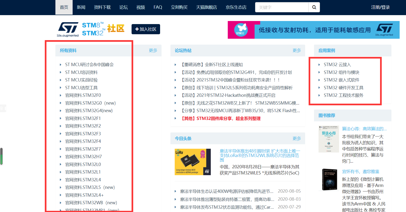 在这个STM32中文社区网站里,你不但可以下载到固件库,还能下载到芯片参考手册、数据手册等等,这样你就不用苦苦寻找资料或向别人讨资料了。