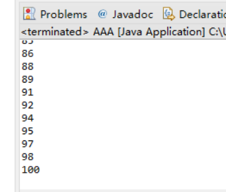 2.package aaa; 3. 4.public class AAA { 5. 6. public static void main(String[] args) { 7. // TODO Auto-generated method stub 8. for(int i=1;i<=100;i++){ 9. if(i % 3==0) { 10. continue; 11. } 12. System.out.println(i); 13. } 14. } 15. 16.}![]()