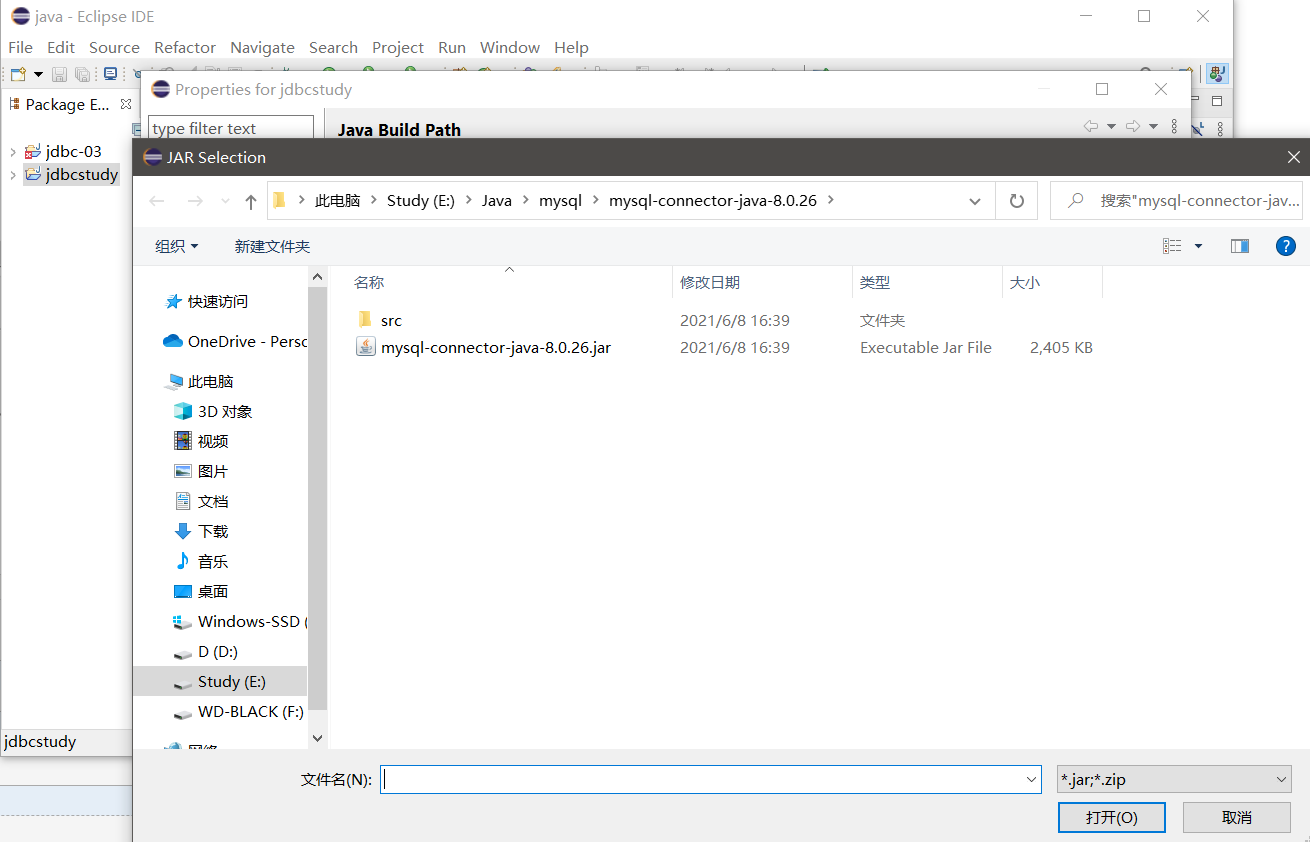 之后点击右侧Add External JARs,在弹出的界面找到你下载的jar包,如下图