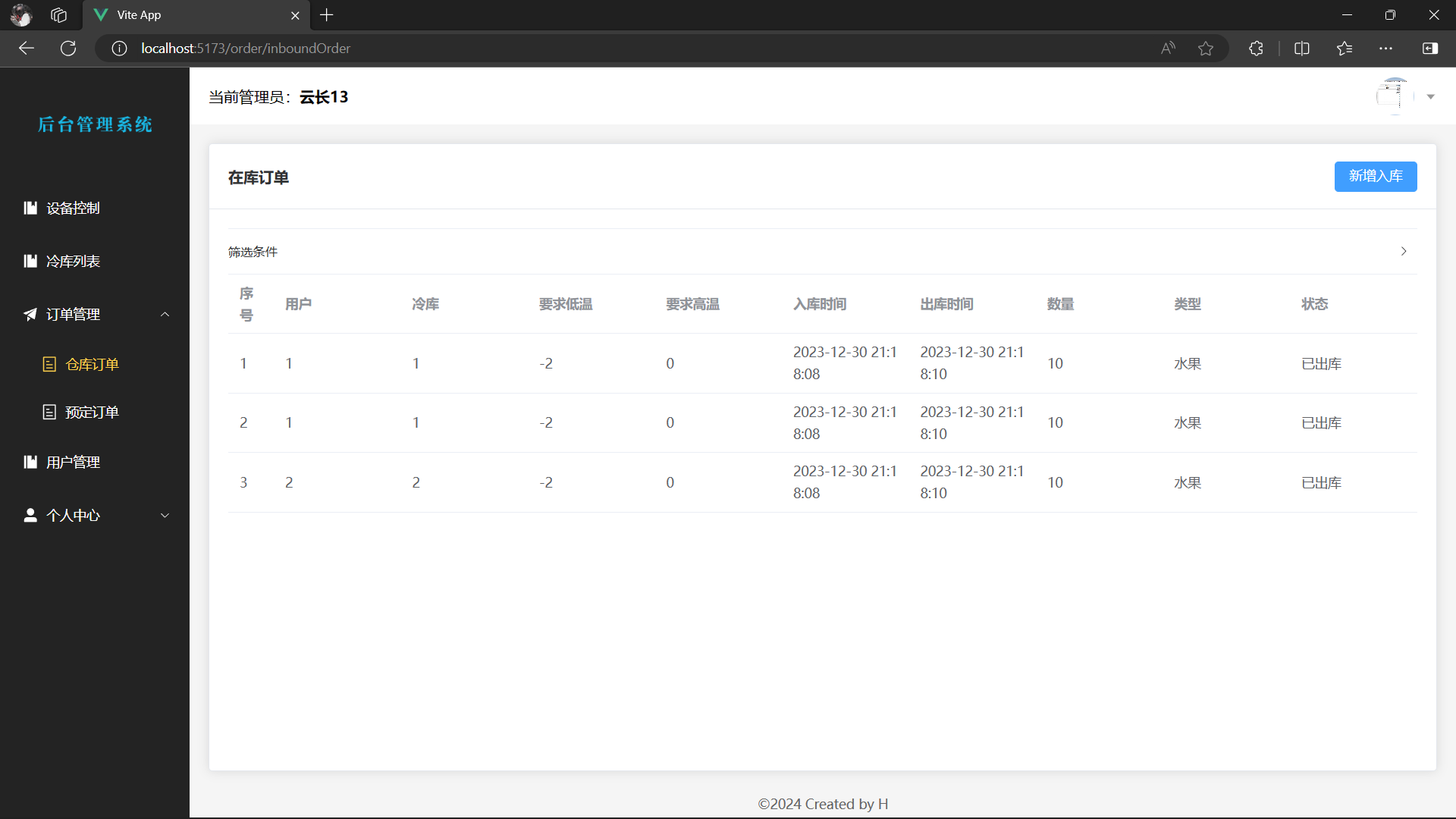 增加手动添加在库订单,并且在入库时设置冷库温度