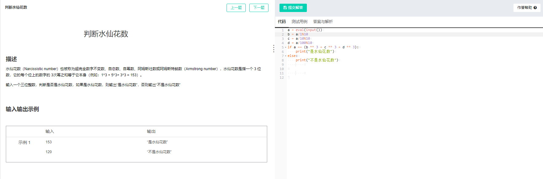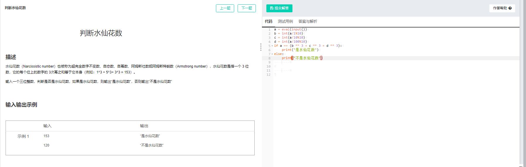 (2) 判断水仙花数