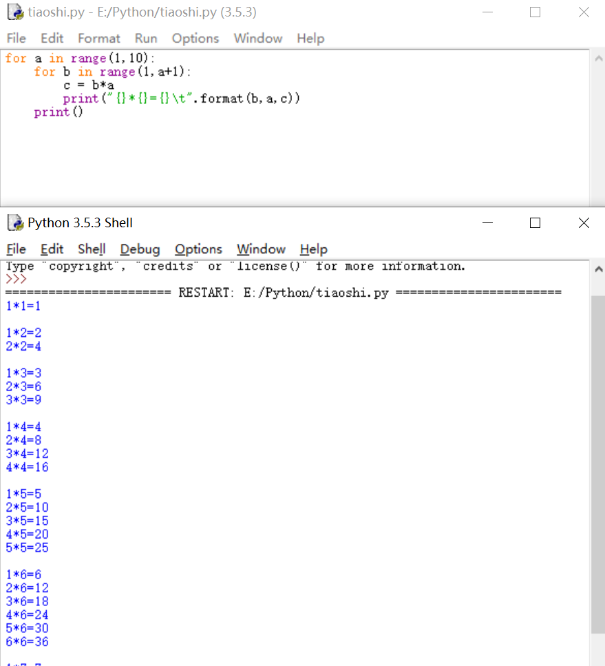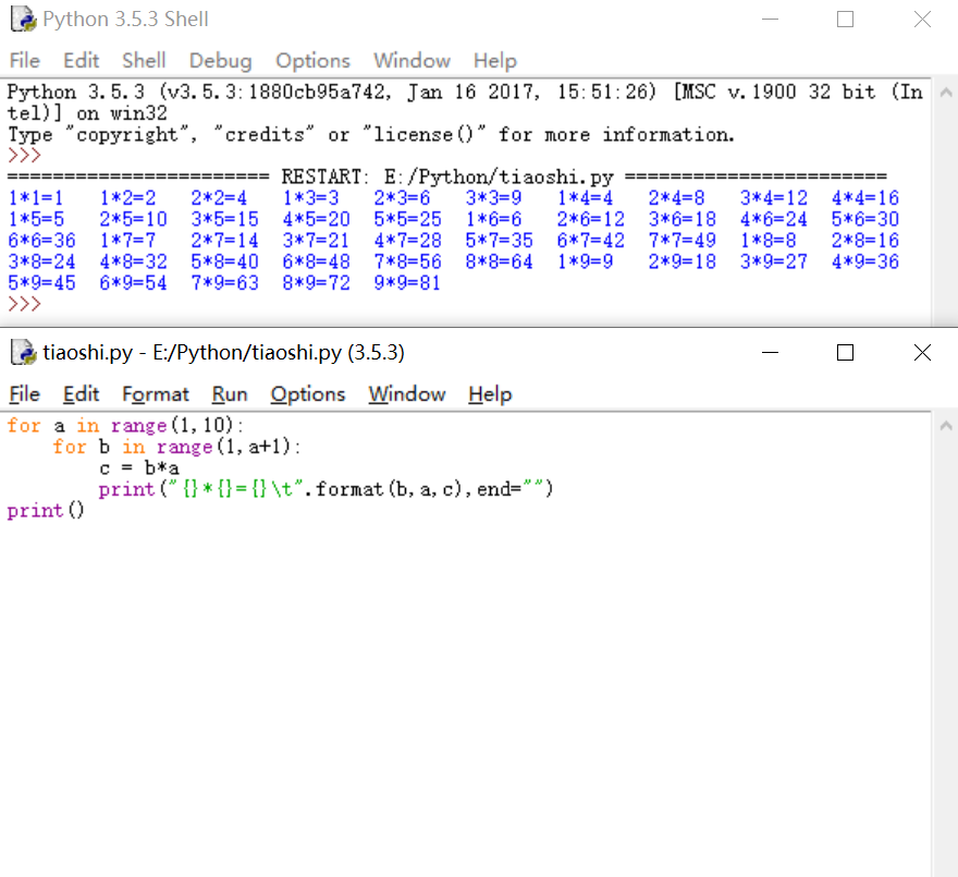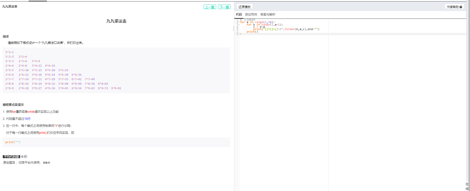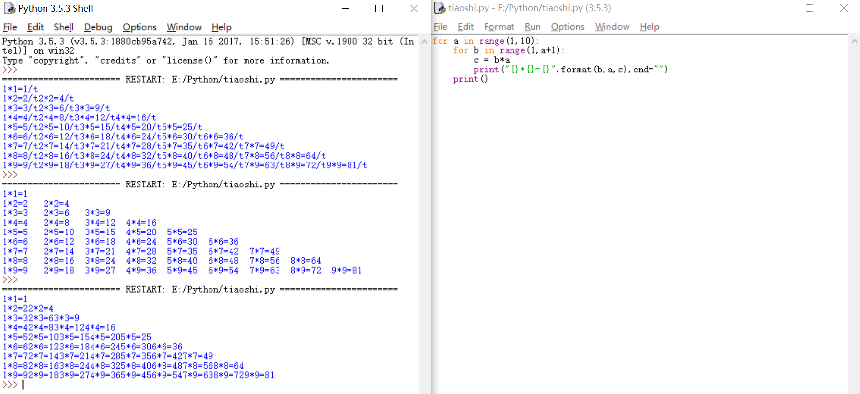 错误:当将最后一个print位置没有缩进,没有出现9*9的形式