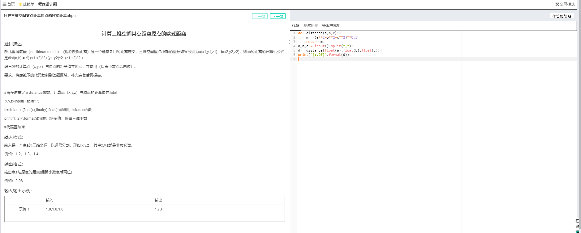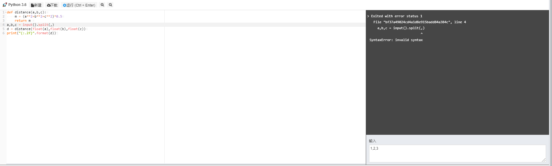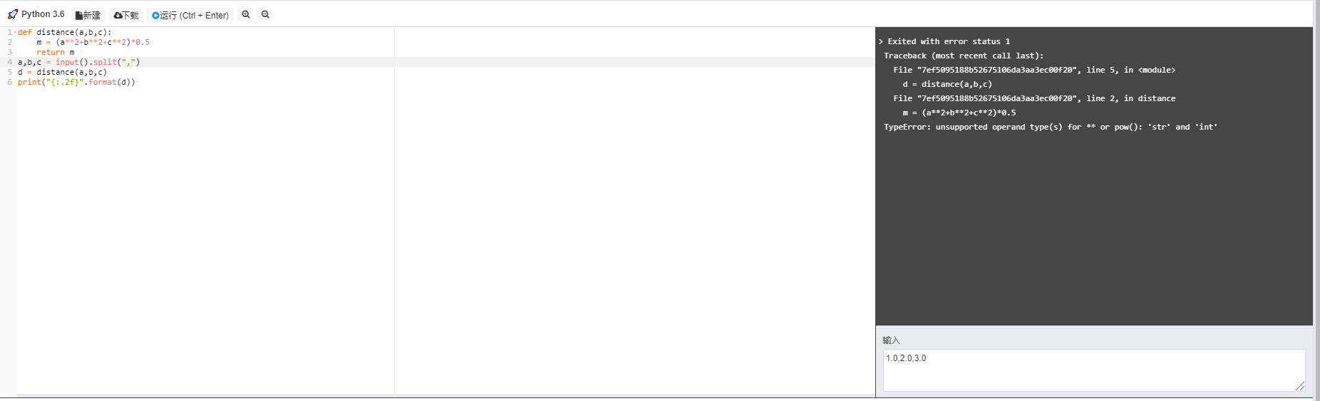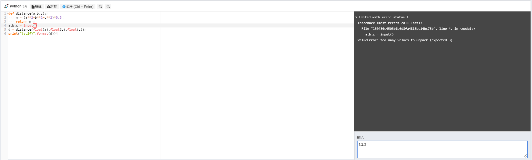 d=distance(float(x),float(y),float(z))#调用distance函数