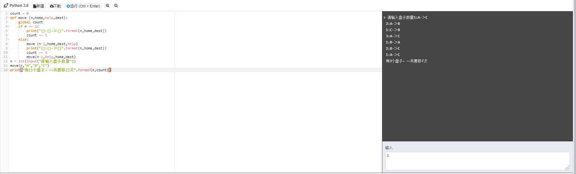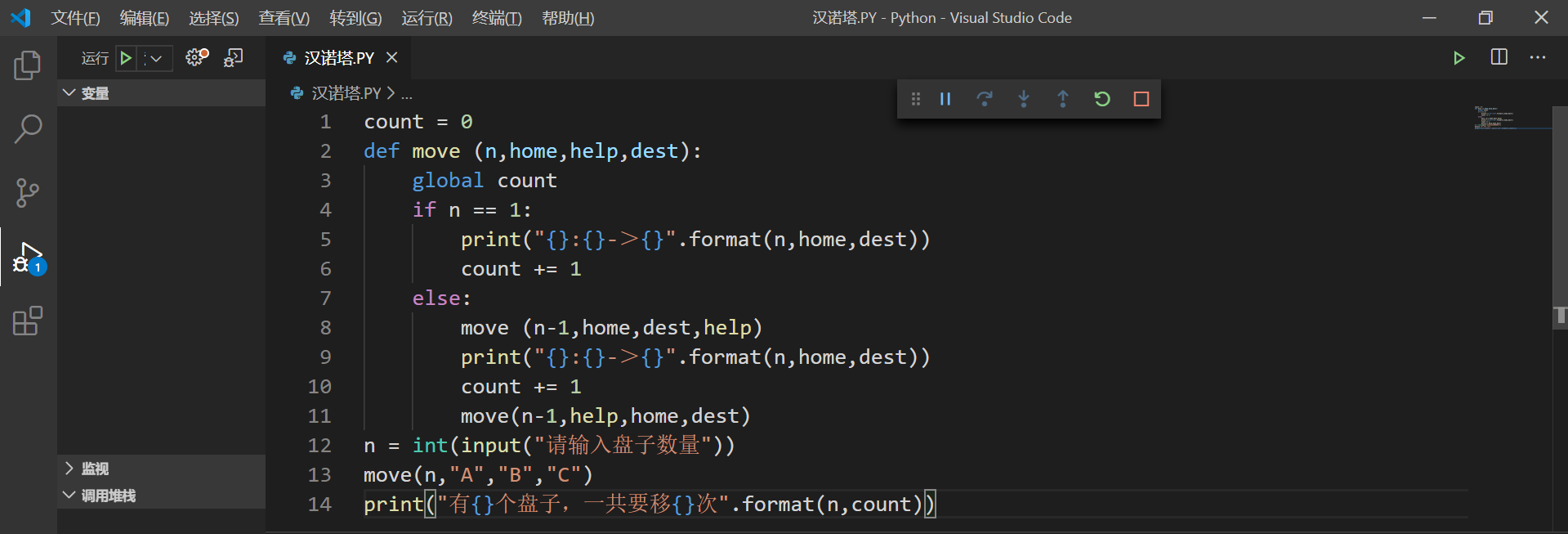 题目2、汉诺塔的求解(可选,自行在本地电脑实现)