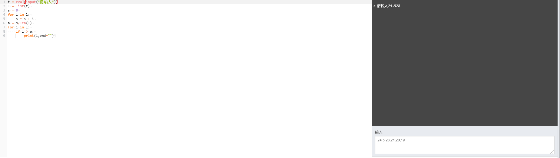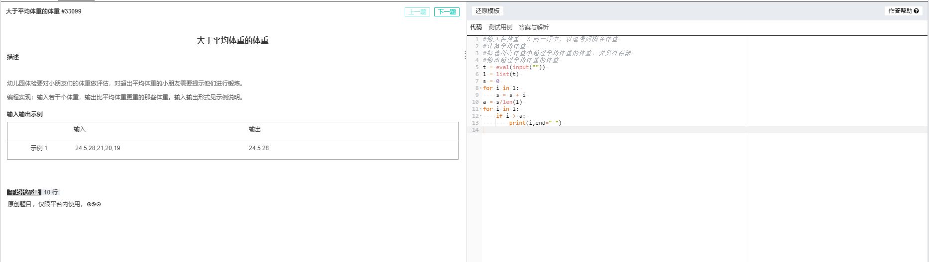 编程实现:输入若干个体重,输出比平均体重更重的那些体重。输入输出形式见示例说明。