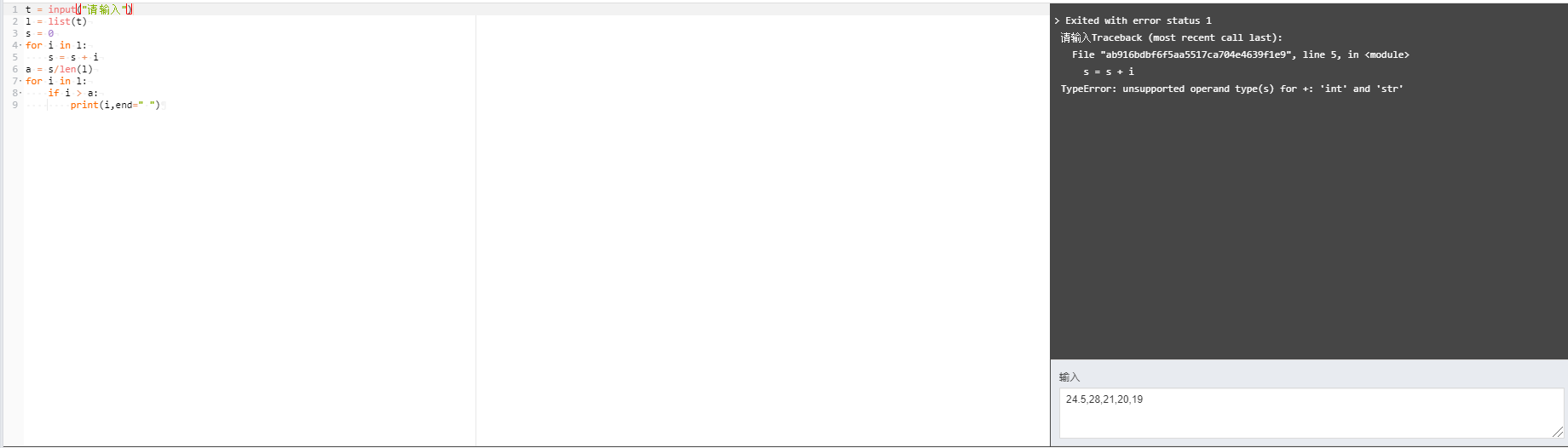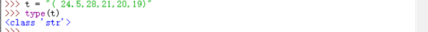 错误分析:用户输入的“ 24.5,28,21,20,19”数据,是以 "( 24.5,28,21,20,19)"的形式赋予变量t,所以无法对数据进行后续操作。