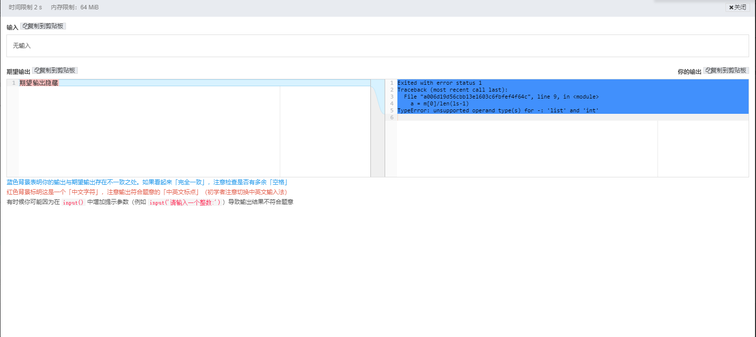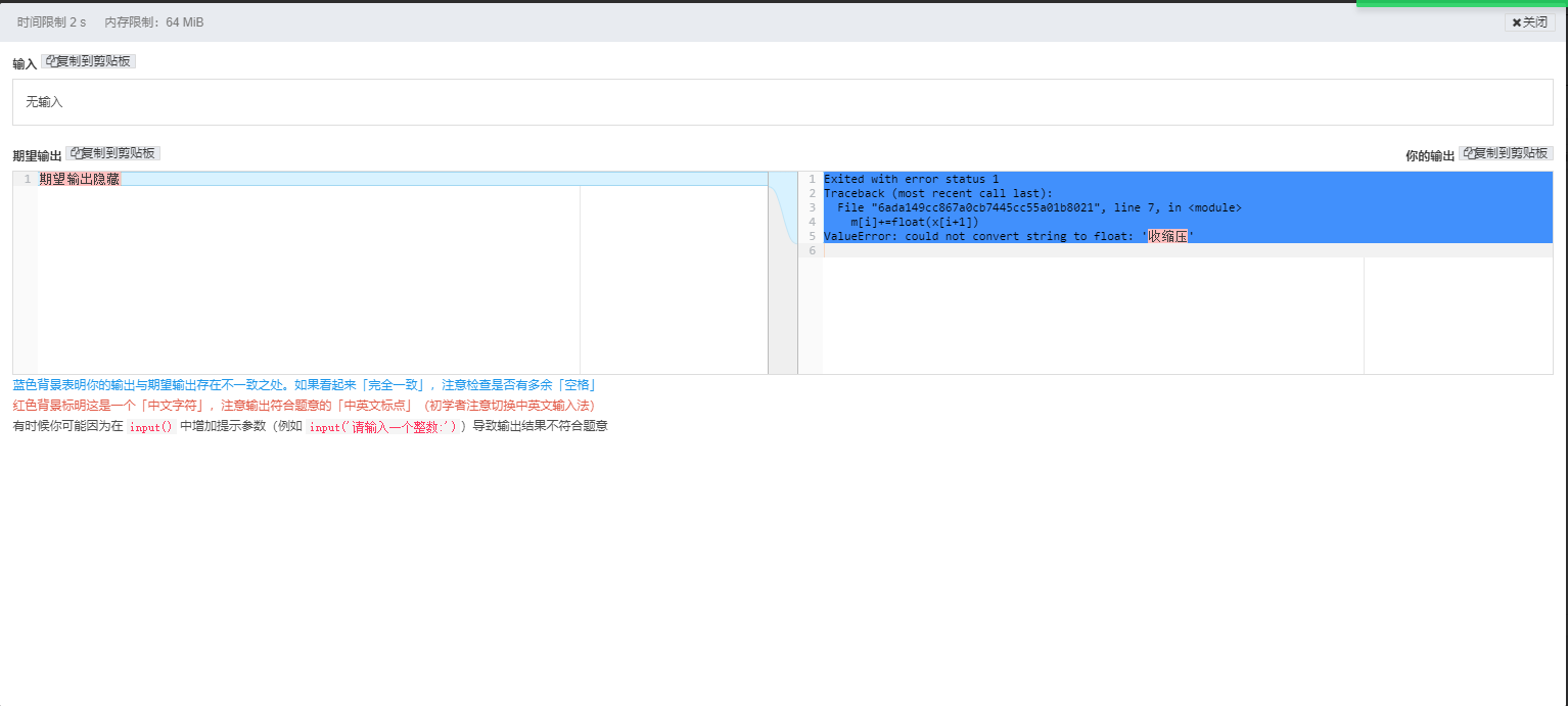 错误分析:此时列表的第一个元素不是待处理的数值而是文字。