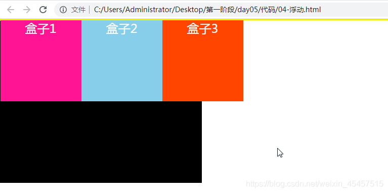浮动带来一个现象,盒子并排放置->脱离标准流,成为浮动流->不占界面位置