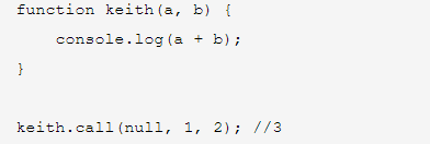 第一个参数是必须的,可以是null,undefined,this,但是不能为空。设置为null,undefined,this表明函数keith此时处于全局作用域。第二个参数中必须一个个添加。而在apply中必须以数组的形式添加。