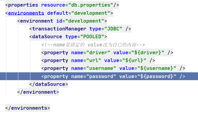 上述代码指定使用 db.properties` 文件中的属性作为数据库连接的配置。