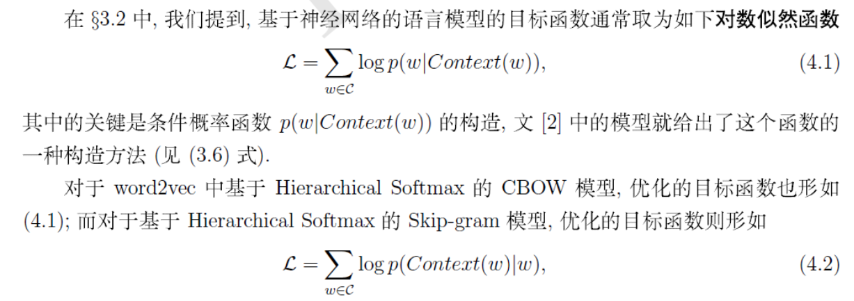 答:word2vec两个模型为CBOW和Skip-gram,cbow和Skip-gram又分为层序softmax训练和负采样训练,故损失函数可以分情况讨论。