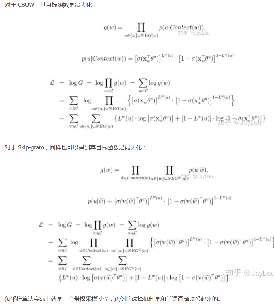 作者对其他的单词进行负采样以降低其他单词的相关权重,作者认为负采样中单词作为负样本的概率应该和其词频正相关,所以词频越高的越大概率被抽到。