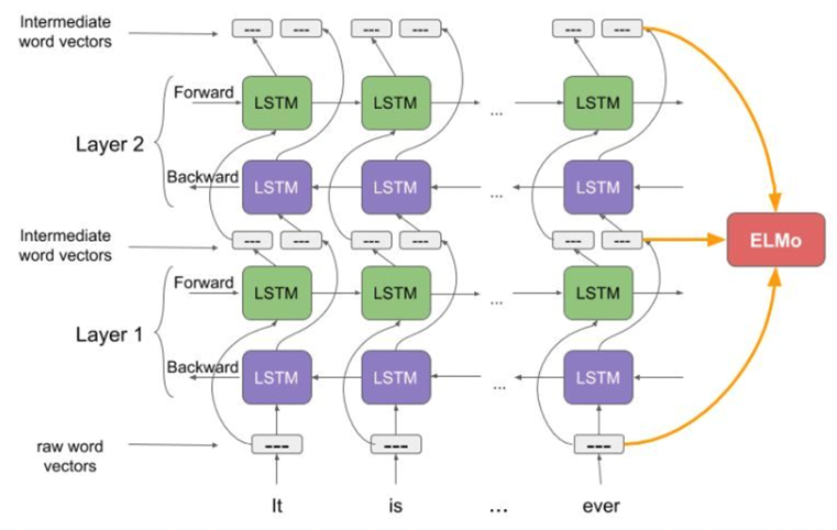 Elmo是对特征进行拼接,没有Bert对特征进行融合效果好