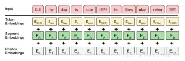 通过上图我们可以看到BERT的输入部分由3部分组成: