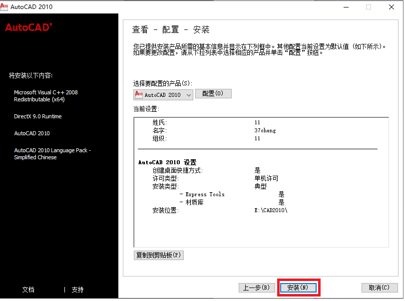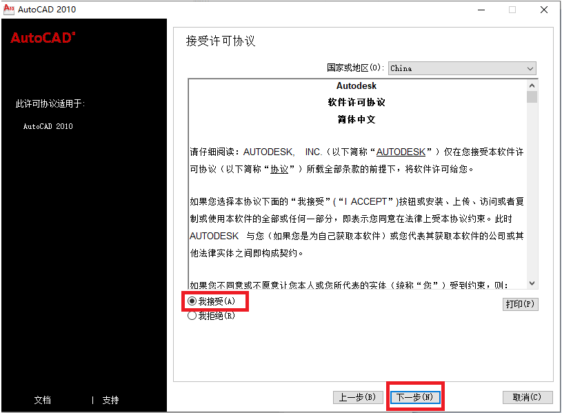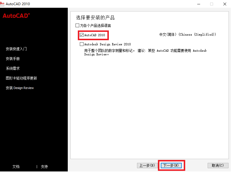 5.勾选【AutoCAD 2010】,点击【下一步】。