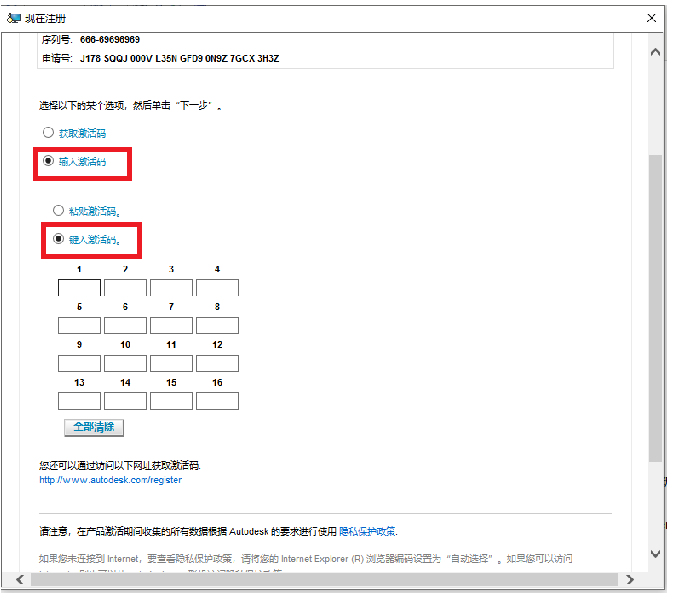 21.选择【输入激活码】,选择【键入激活码】(不要关闭此界面)。