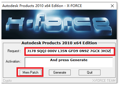 23.生成激活码:①使用快捷键“Ctrl+C”复制【申请号】后的代码;②使用快捷键“Ctrl+V”将代码粘贴到【Request】后的框中;③点击【Mem Patch】;④点击【确定】;⑤点击【Generate】生成激活码。