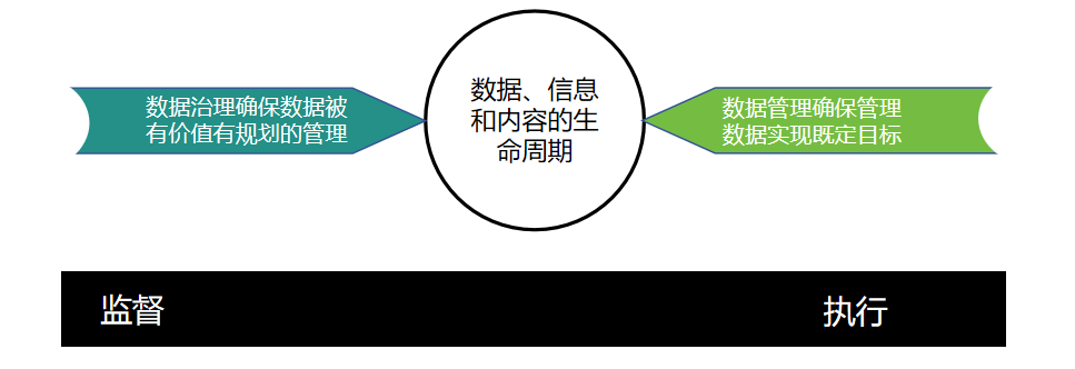 数据治理确保在不直接执行数据管理的情况下正确管理数据。 数据治理与数据管理之间是监督与执行关系,明确职责分离。通俗讲:数据管理是确保企业数据价值实现,而数据治理是对数据价值进行决策(规划数据价值场景、提升数据数据价值)。
