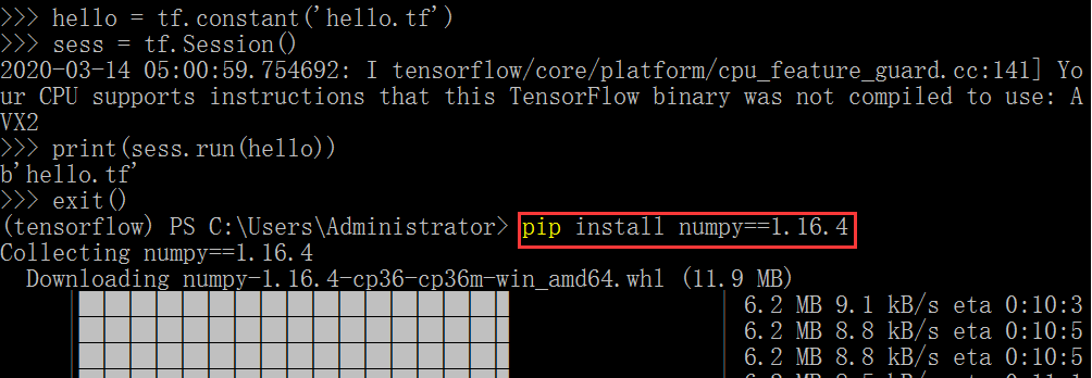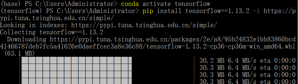 pip install tensorflow==1.6.0 #安装tensorflow并指定版本为1.6.0