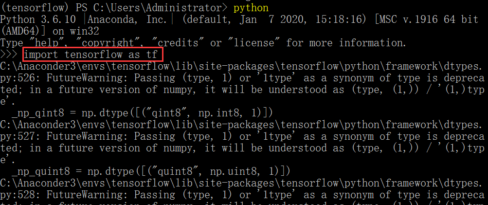 tensorflow\python\framework\dtypes.py:516: FutureWarning: Passing (type, 1) or ‘1type’ as a synonym of type is deprecated; in a future