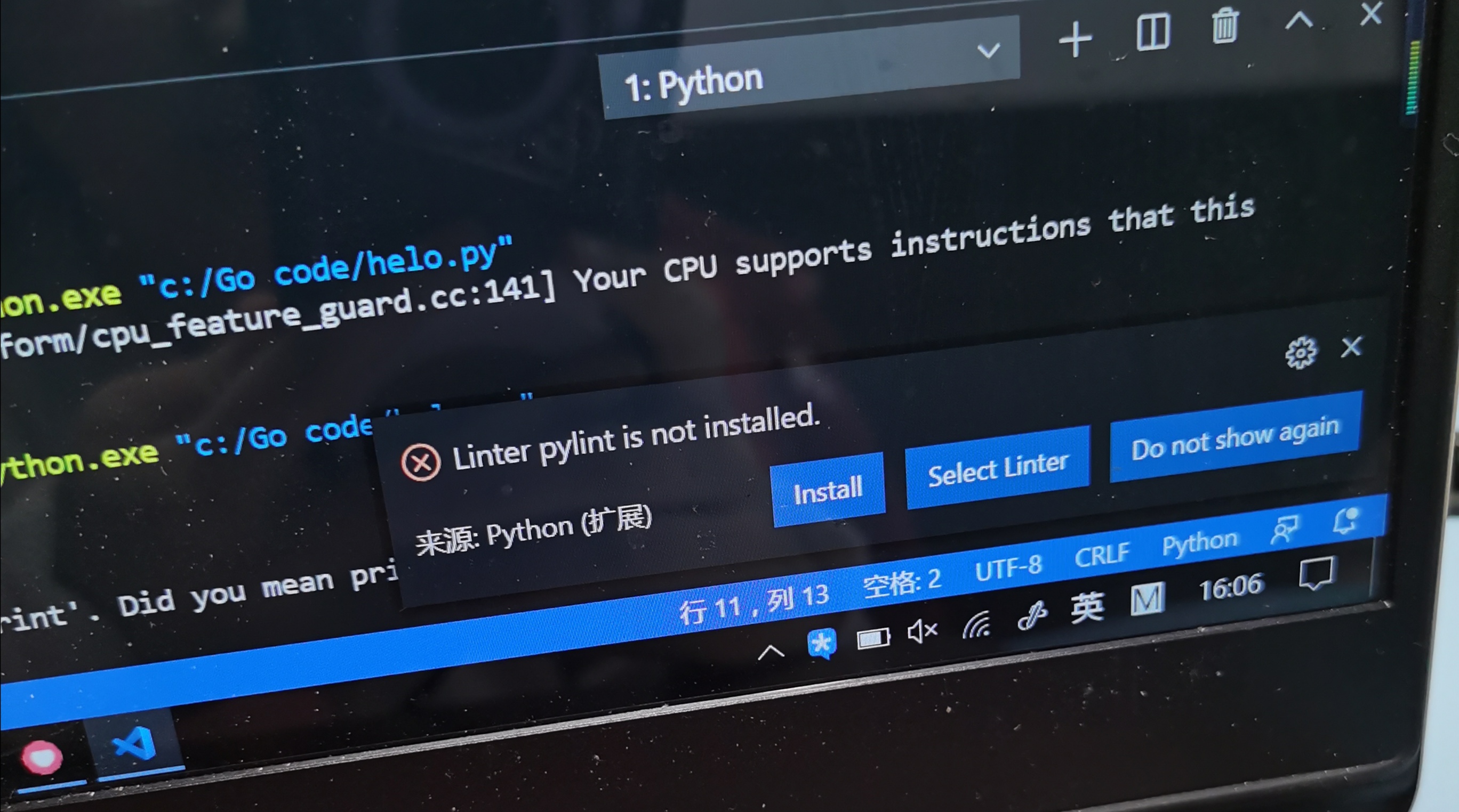 之后写了程序,运行后出现了下图。点安装后选择了pip。