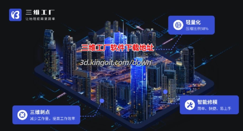三维工厂K3DMaker是一款三维模型浏览、分析、轻量化、顶层合并构建、几何校正、格式转换、调色裁切等功能专业处理软件。可以进行三维模型的网格简化、纹理压缩、层级优化等操作,从而实现三维模型轻量化。轻量化压缩比大,模型轻量化效率高,自动化处理能力高;采用多种算法对三维模型进行几何精纠正处理,精度高,处理速度快,超大模型支持;优秀数据处理和转换工具,支持将OSGB格式三维模型转换为3DTiles等格式,可快速进行转换,快来体验一下吧,下载地址详见插图。