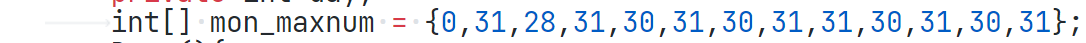 int[] mon_maxnum = {0,31,28,31,30,31,30,31,31,30,31,30,31};