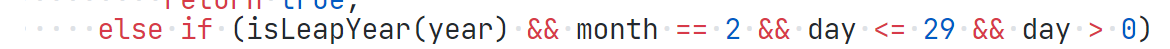 else if (isLeapYear(year) && month == 2 && day <= 29 && day > 0)