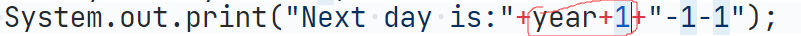System.out.print("Next day is:"+year+"-"+month+"-"+day);