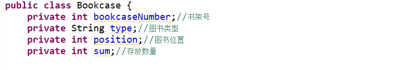 - 主要存放书籍的书名、类型等属性,能够被图书管理员管理,所有的书籍又被存放在书架中,Bookcase类与Book类是存放与被存放的关系。