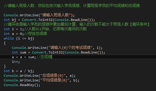 1.请输入班级人数,然后在依次输入学员成绩,计算班级学员的平均成绩和总成绩