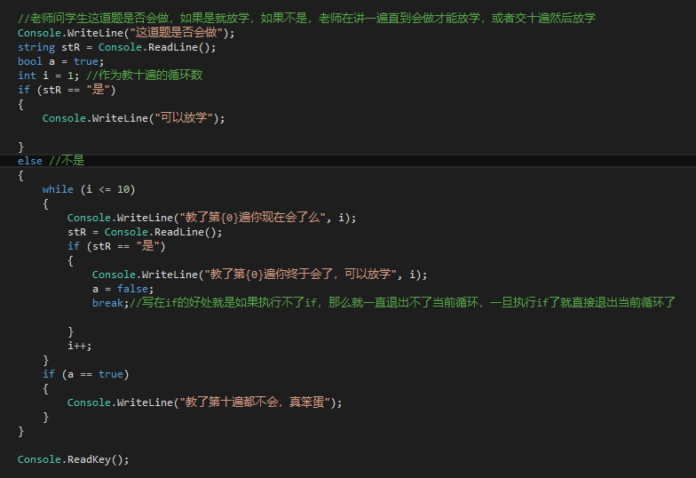 2.老师问学生这道题是否会做,如果是就放学,如果不是,老师在讲一遍直到会做才能放学,或者交十遍然后放学
