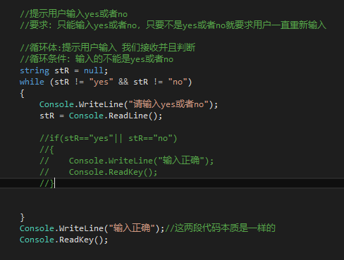 //要求:只能输入yes或者no,只要不是yes或者no就要求用户一直重新输入