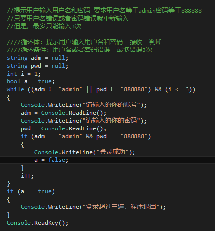 //只要用户名错误或者密码错误就重新输入
