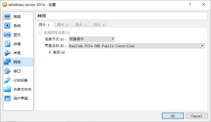 打开Windows sever 2016虚拟机,将网络设置为桥接模式;