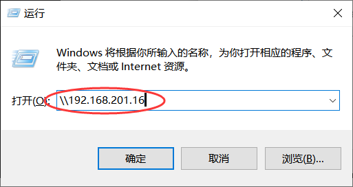 查看windows sever 2016服务器的IP地址为192.168.201.16,在客户机上win+R运行\\192.168.201.16连接服务器;