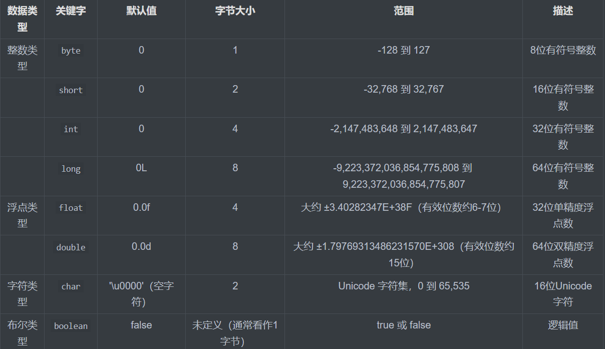 1.8种基本数据类型