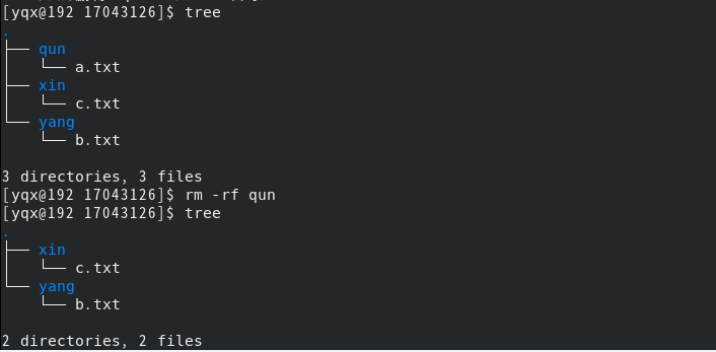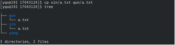 cp xin/a.txt qun/ ##把xin中a.txt文件复制到qun文件夹中