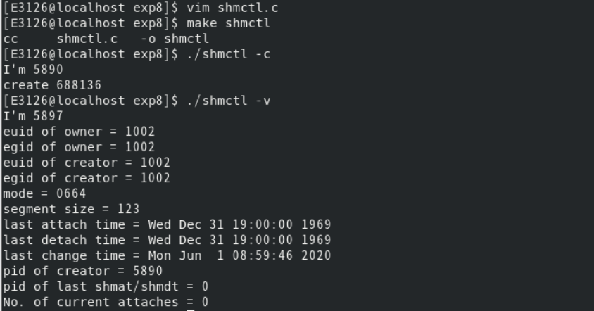 先在另一个终端执行 ./shmctl -a ,然后在当前终端执行 ./shmctl -v (注意手速,5秒内要搞定)。