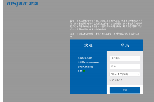 4.2.6访问浪潮服务器BMC(使用列表内出现机器的IP),账户密码默认为“admin”;