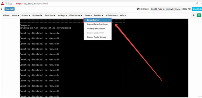 4.2.30加载完映像,点击“Power”>“Reset Server”,重启服务器