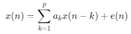 其中,\(p\)为模型阶数,\(a_k\)为系数,\(e(n)\)为预测误差(噪声)。