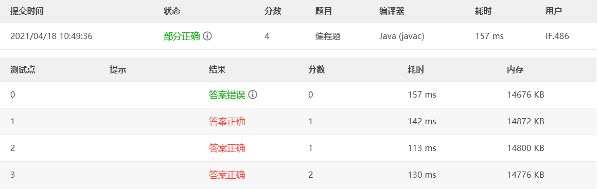 (2)第五次题目:第一题找出最长的单词,这就要使用到正则表达式和一个简单的循环,第二题合并两个有序数组是之前写过的,所以没啥讲的,第三题对整形数据进行排序,这道题就运用到一个简单的排序,第四题一个是最难的一题,统计java程序中关键字的出现次数,这道题我没拿到满分,这道题还是要运用到正则表达式,我不会,只能硬着头皮去看攻略,勉强写出来了,写了好几天,测试点还是有几个没过只好放弃了,总的来说,这道题不是很麻烦,但我不会是真的没办法;第五题是上次日期类的第二种聚合方式,在上次题目的基础上,改了日期的范围,输出和部分类的函数也不一样,但是却感觉清晰了很多,毕竟是第二次做了。这五道题让我对类的构造和使用还有聚合类有了更深的认识,这次的难度较之前的来说明显简单了不少,以后的作业好好写一定会有进步的。