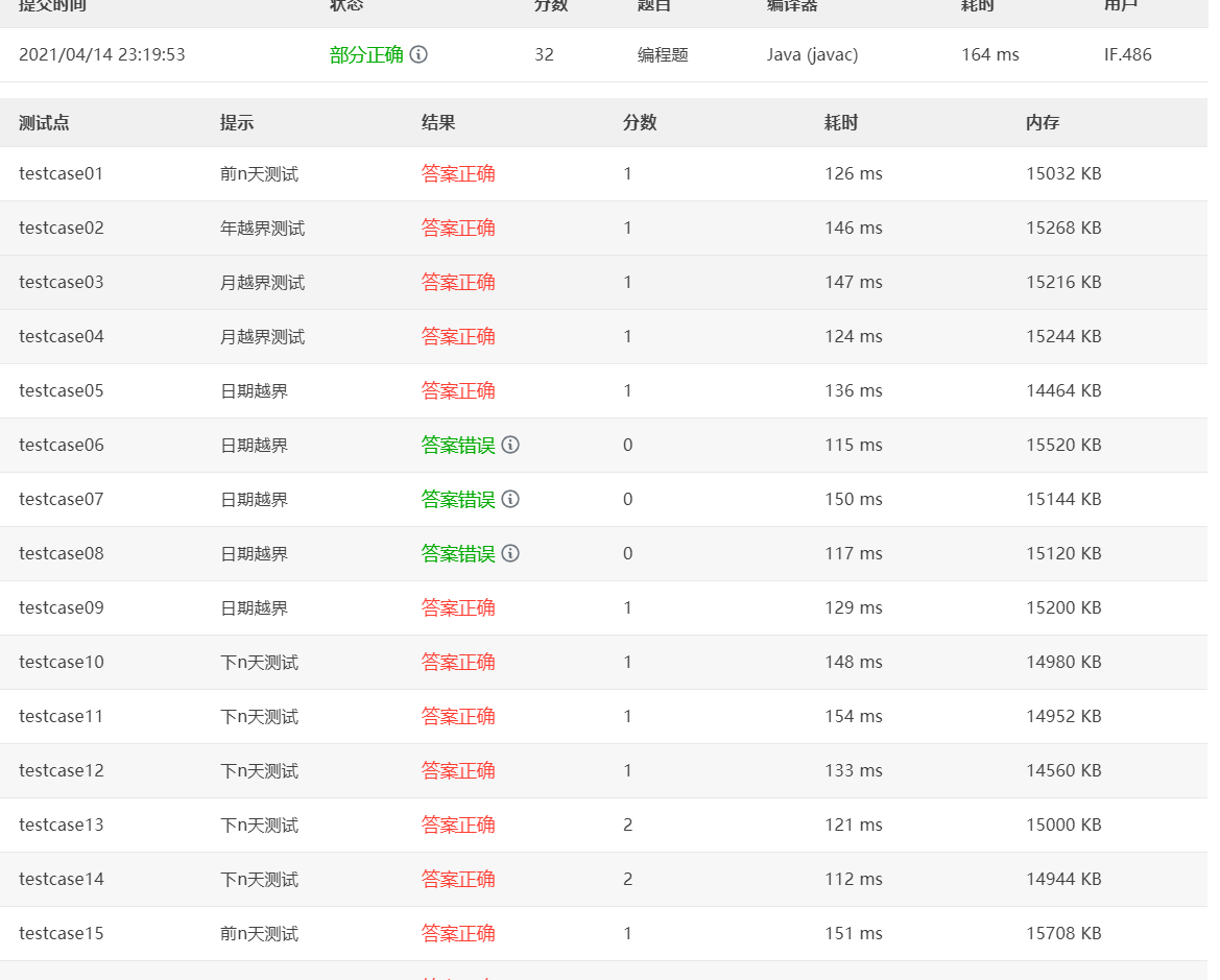 (3)第四次题目集的第三题日期类聚合一,我这道题没拿满分,就是因为有日期越界测试点没过,后面经过改进通过了,下次还是要注意在函数外确定参数的范围,不能单单只在一个地方定义。