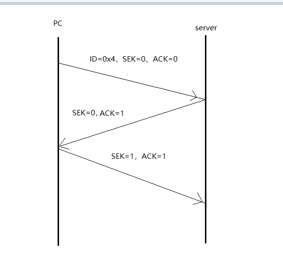 1.第一次握手:PC端向服务器发出连接请求报文,seq=0,ack=0.