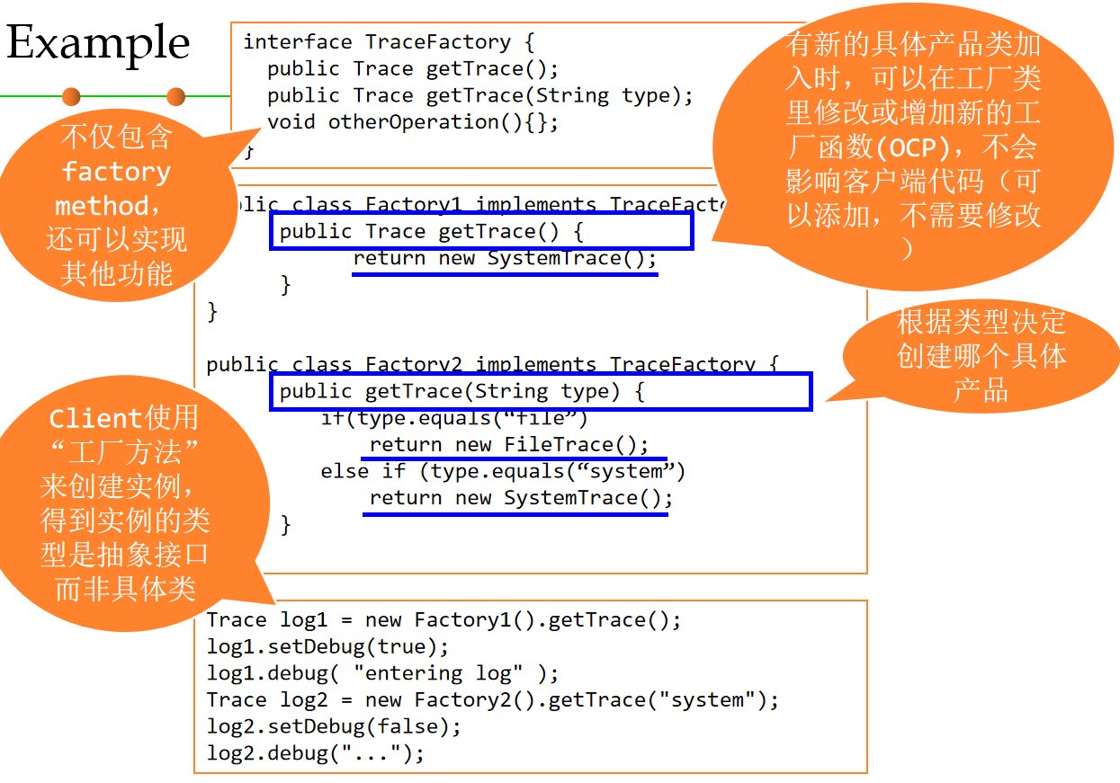 静态工厂方法(在工厂方法前加static):既可以在ADT内部实现,也可以单独创建工厂类